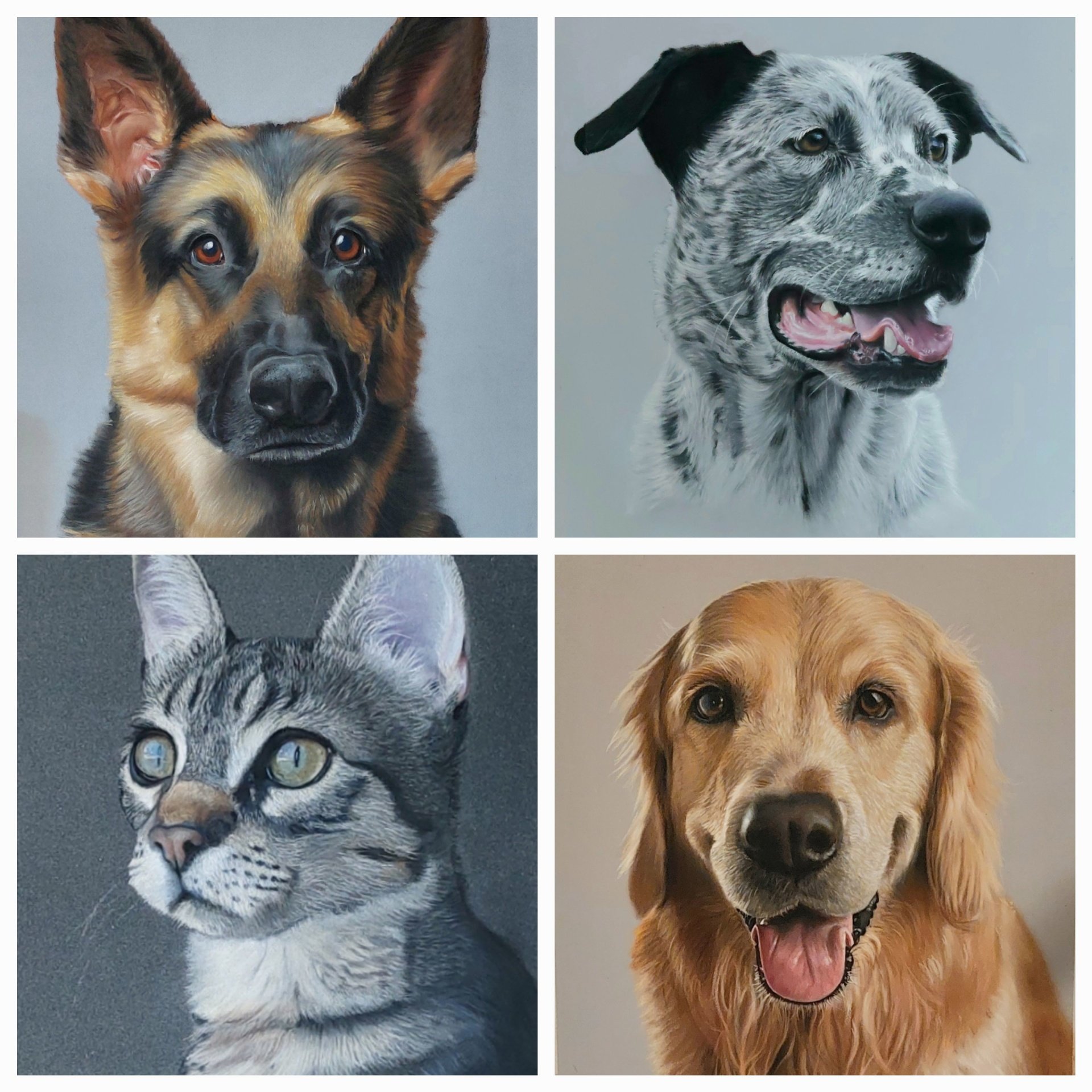 "Ik teken realistische portretten van uw geliefde huisdier met pastelpotlood. Met uw favoriete foto als referentie is mijn doel om de persoonlijkheid van het diermet veel diepte en levendigheid in het portret te vereeuwigen. Zo doe ik eer aan deze prachtige wezens, die ons zoveel liefde en plezier geven. Een levensecht portret is een herinnering om voor altijd te koesteren, ook na het onvermijdelijke afscheid.De reacties van mensen op mijn werk zijn hartverwarmend en raken mij telkens weer. Dit is mijn motivatie voor dit dankbare werk, dat ik heel graag voor u doe".